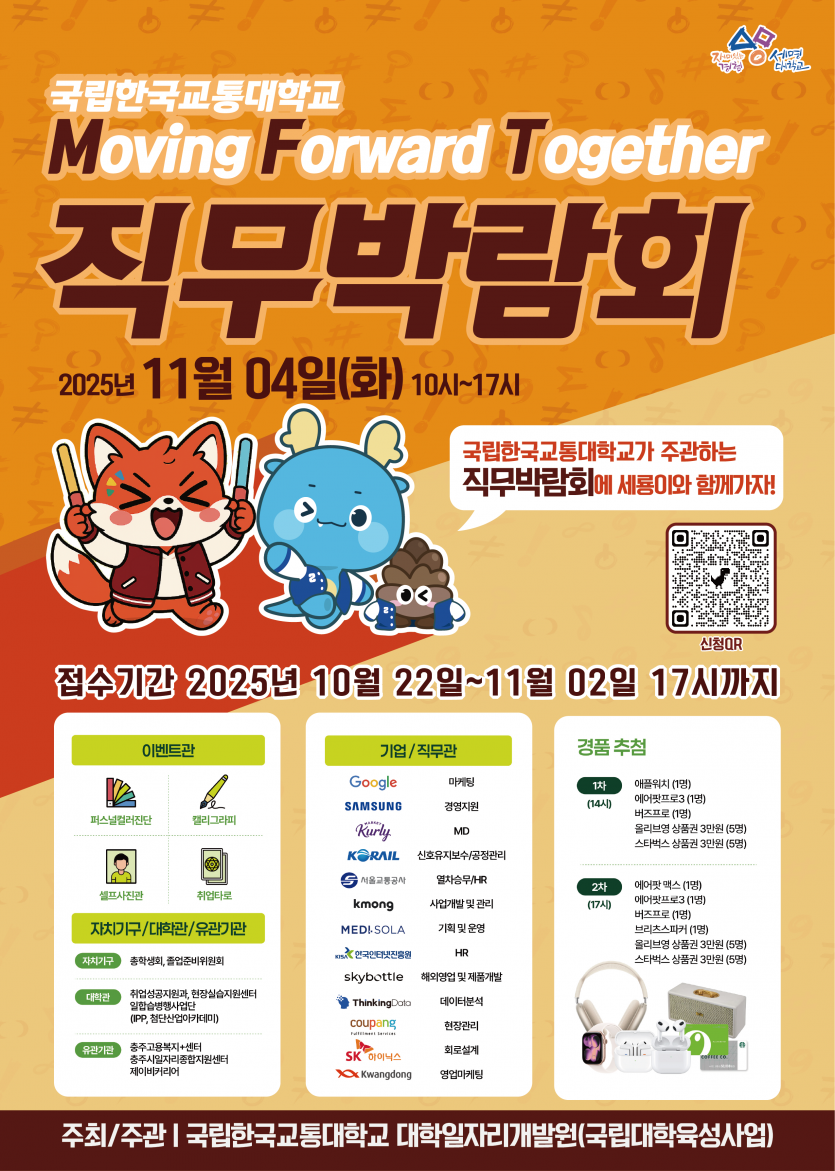 국립한국교통대학교가 주최하고 대학일자리개발원이 주관하는 JOB직무.채용박람회가 오는 11월 4일(화) 개최되며,