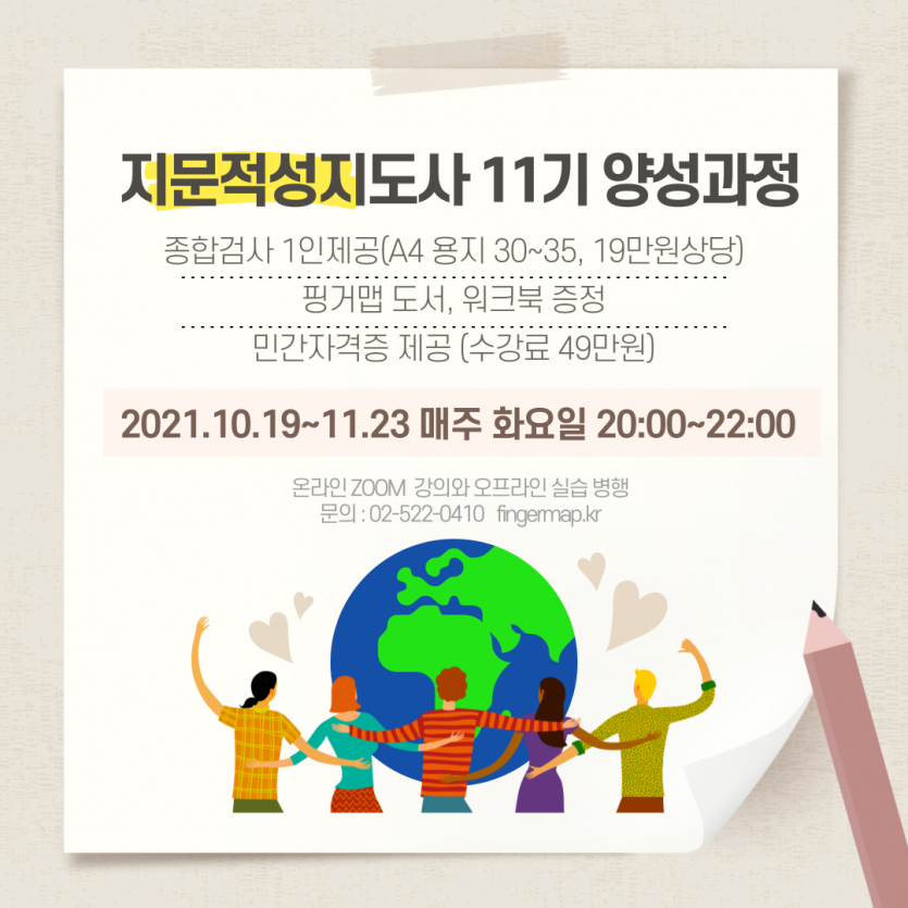 지문적성지도사 양성과정(2급) 11기 과정이 2021년 10/19~11/23까지 진행될 예정입니다.