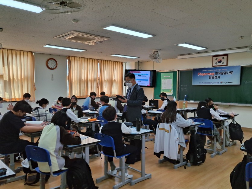 의정부 솔뫼중학교에서 단체 지문적성검사 및 진로 프로그램을 진행하였습니다.